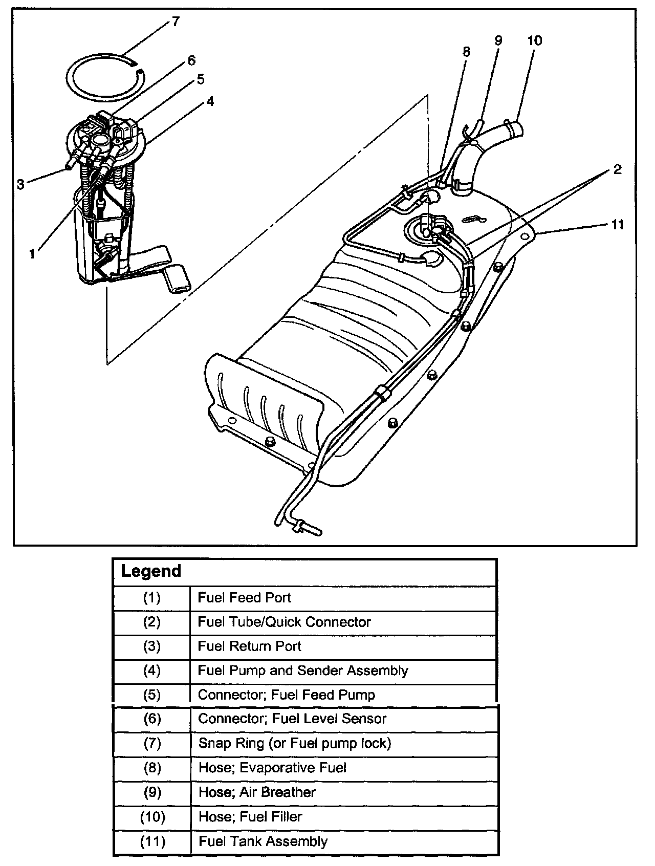 4. Remove fuel tank assembly (11).