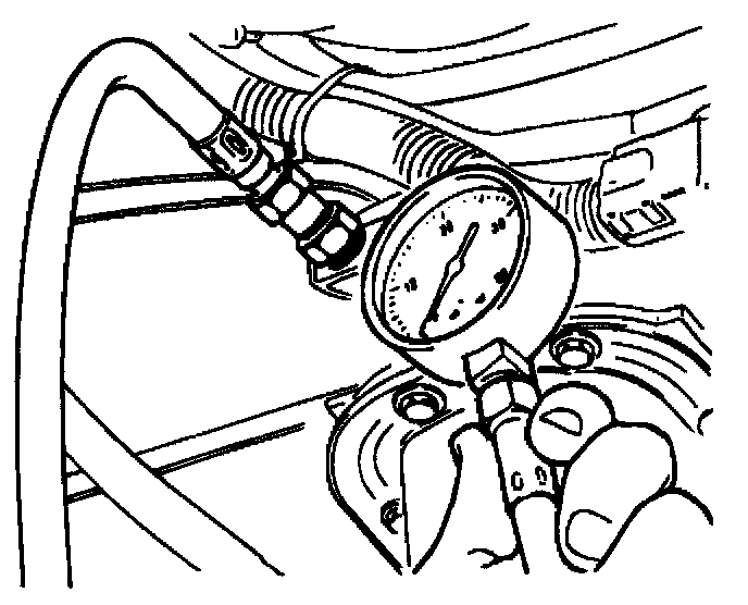7. Note the pressure gauge reading with the engine idling.