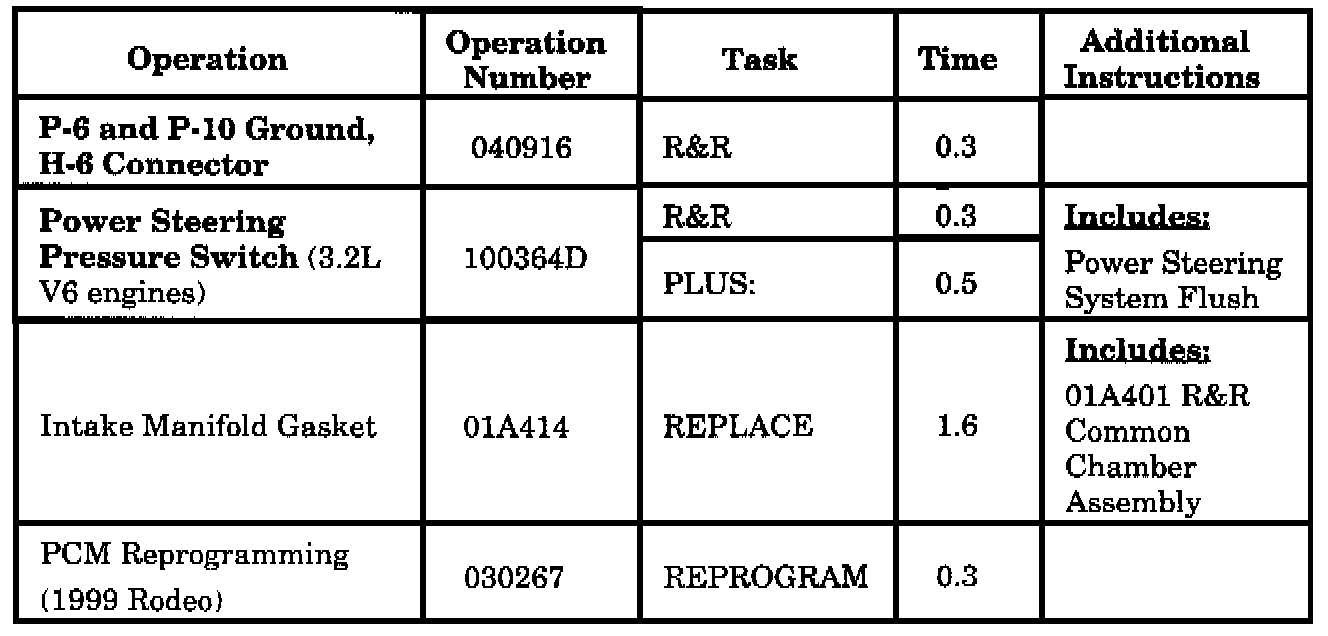 To correct this condition, follow the procedures outlined in this bulletin to determine proper diagnosing, inspection and correction of ground contact points for proper electrical contact, power steering pressure switch cleaning or replacement and power steering system flush, replacement of inlet manifold gasket, and/or PCM reprogramming.