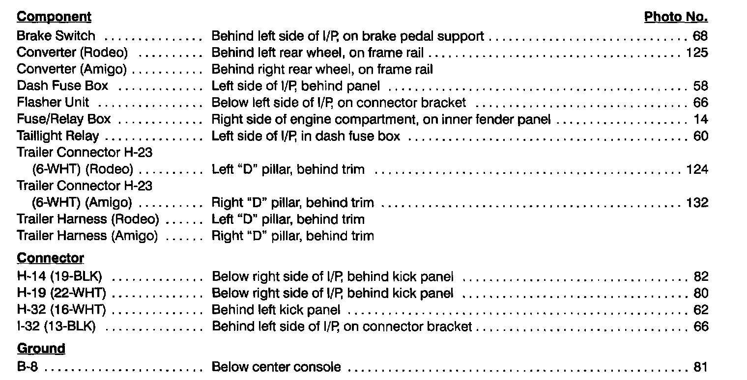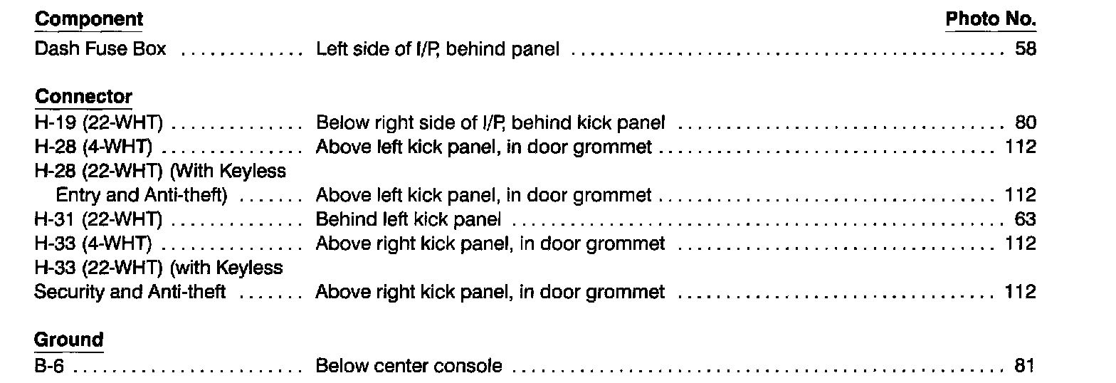 Component Location Index photographs can be found at Component Locations.