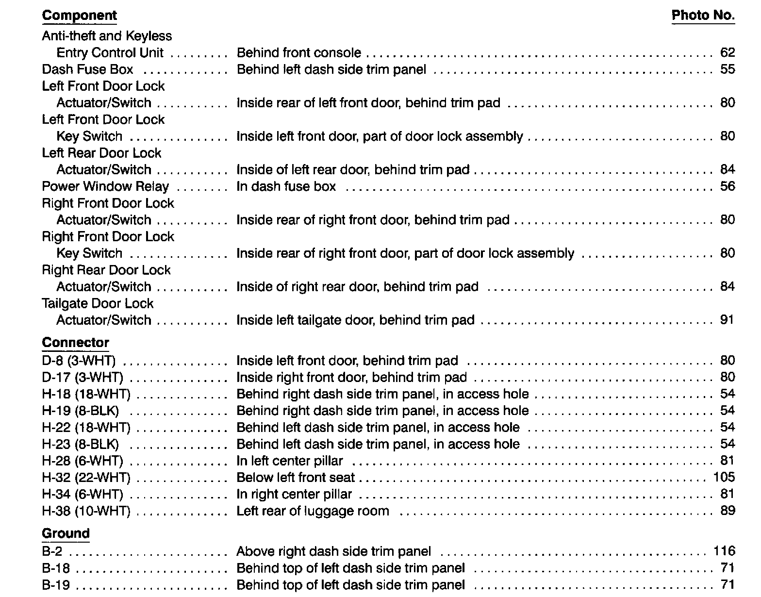 Component Location Index photographs can be found at Component Locations.