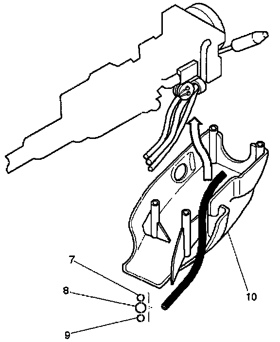1. When installing the steering cowl (10), be sure to pass the harnesses through the route as shown in the figure so that the starter switch harness (7), the combination switch harness (8) and the inflator module harness (9) will not catch.
