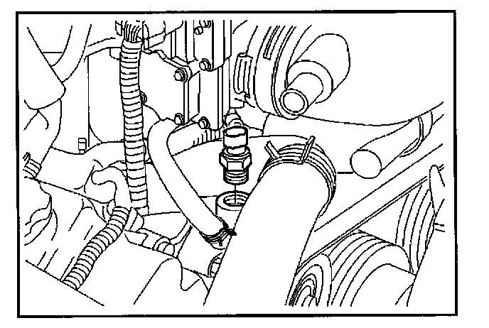Removal ProcedureNOTE: Care must be taken when handling the engine coolant temperature (ECT) sensor. Damage to the ECT sensor will affect proper operation of the fuel injection system.