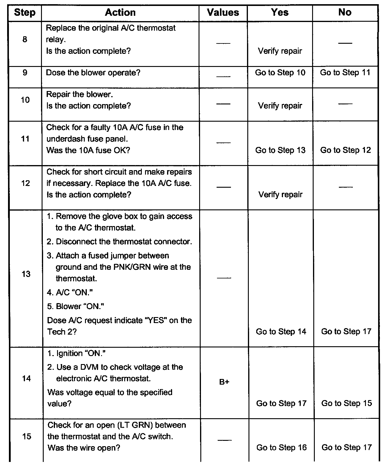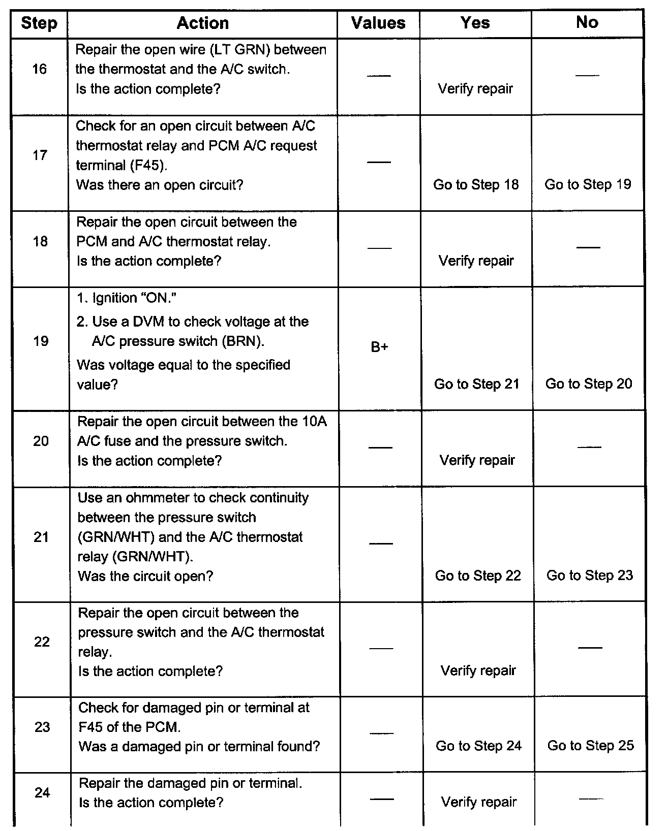 7. There is an extremely low probability that both relays will fail at the same time, so the substitution process is one way to check the A/C Thermostat relay. Use a known good relay to do a substitution check.