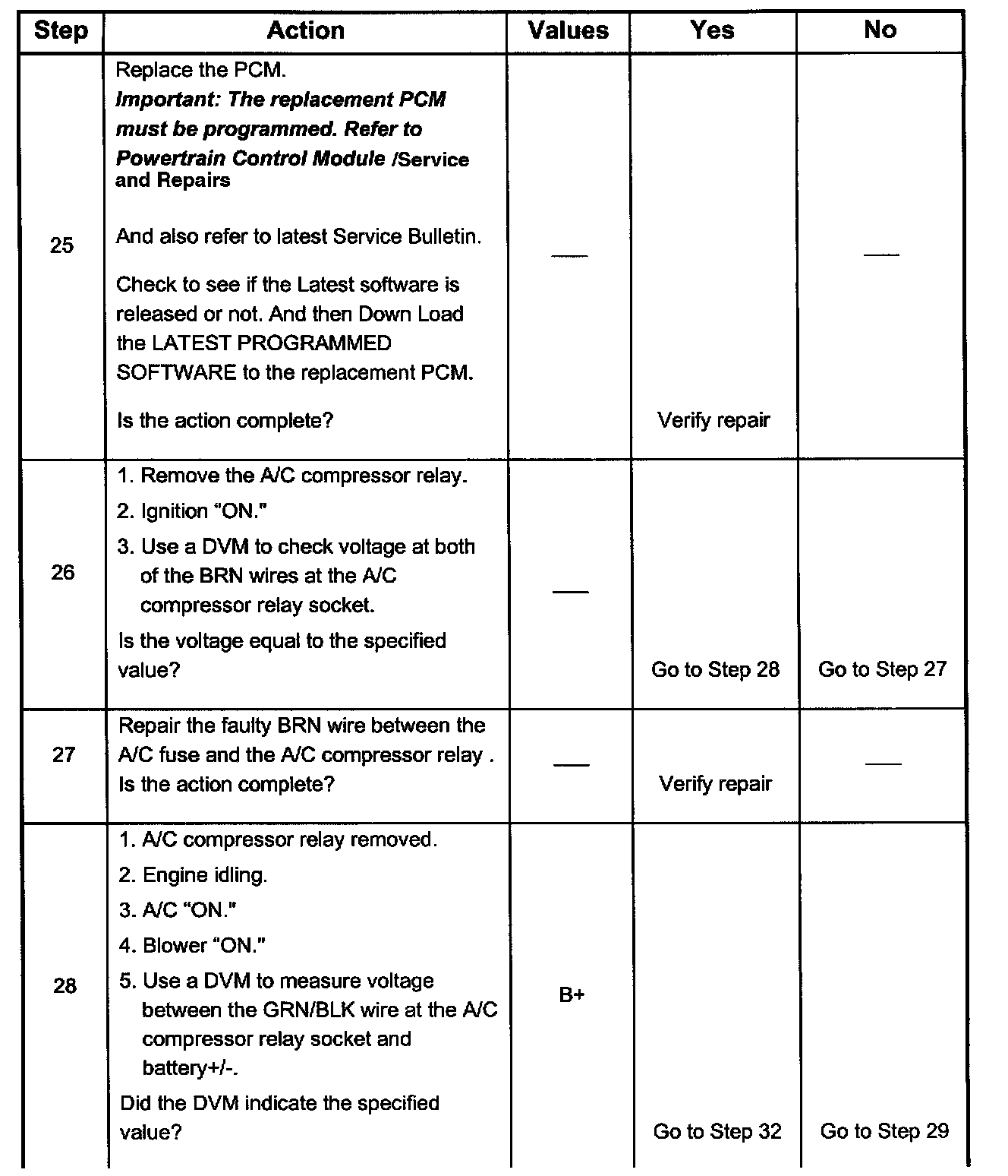 The numbers below refer to the step numbers on the Diagnostic Chart: