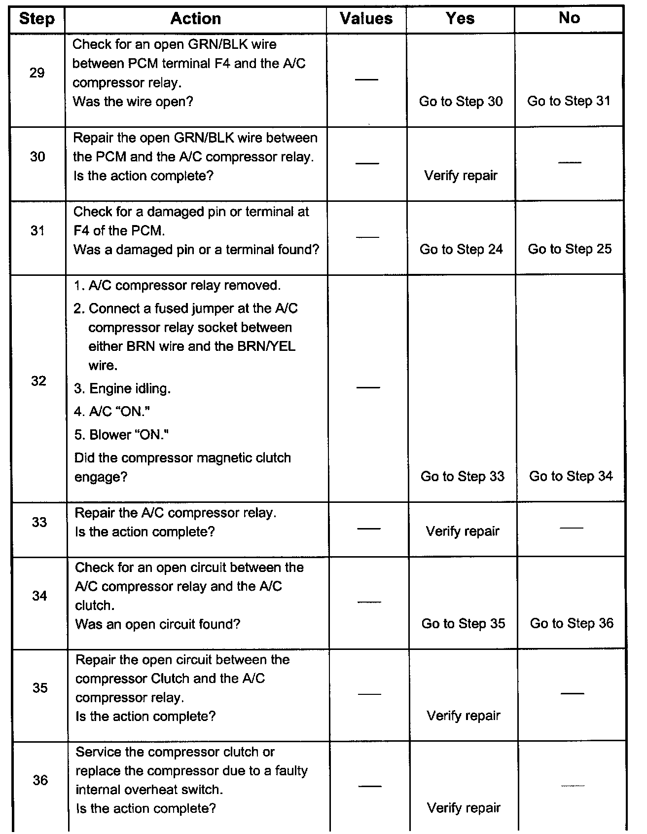 4. Although the normal complaint will be the A/C clutch failing to engage, it is possible for a short circuit to cause the clutch to run when A/C has not been selected. This step is a test for that condition.