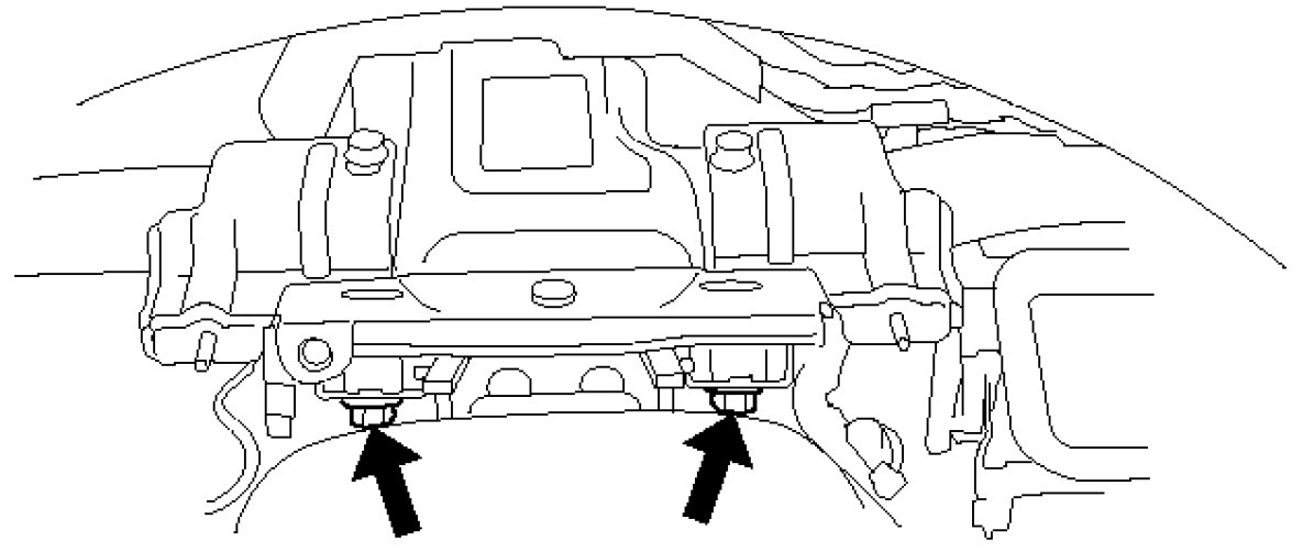 - Disconnect the harness clips from the crossbeam assembly, and remove 2 fixing bolts on both sides and 2 fixing nuts in the center.
