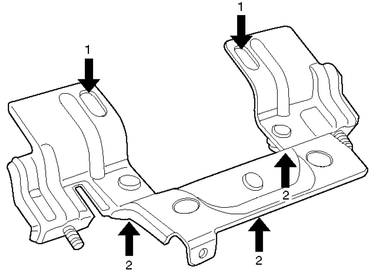- Remove the 2 fixing bolts (upper side) (1) and the 3 fixing nuts (lower side) (2).
