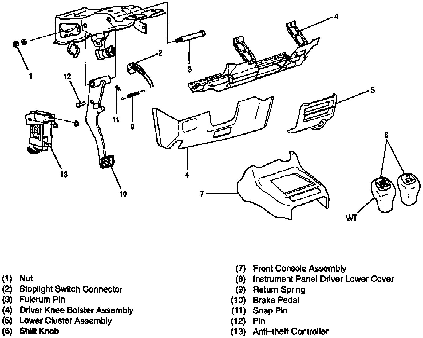 5. Remove driver knee bolster assembly.