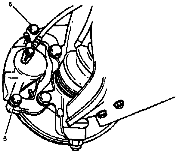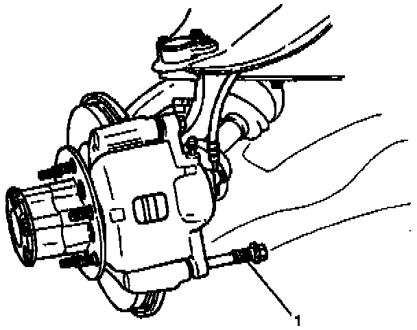 3. Remove caliper assembly and support the caliper assembly so that the brake hose is not stretched or damaged.