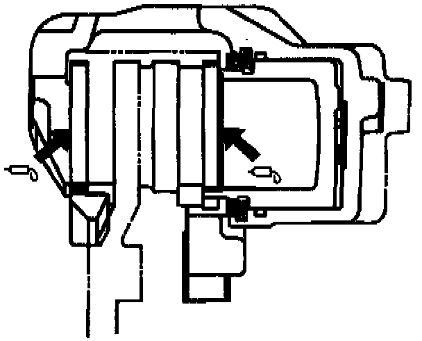 3. Install caliper assembly, use adjustable pliers to bottom the piston into the caliper bore. Be careful do not damage the piston boot and do not damage the flexible hose by twisting or pulling it.