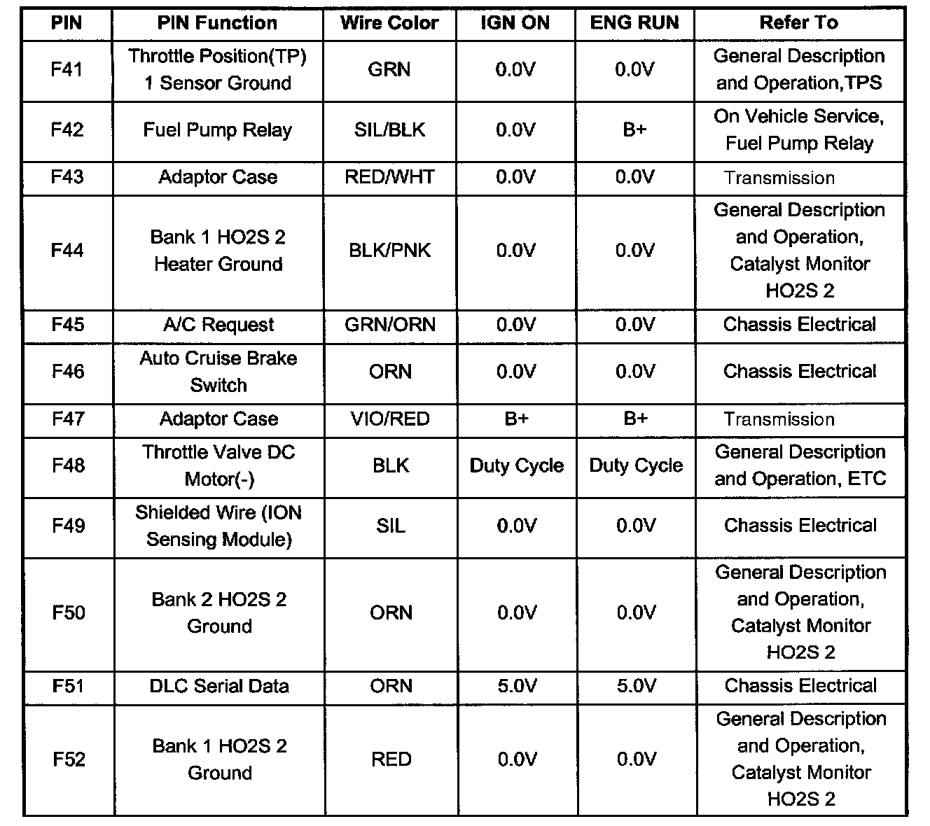 PCM Pinout Table, 80 - Way Blue Connector - Row "F41 - 60" (F41 To F52):