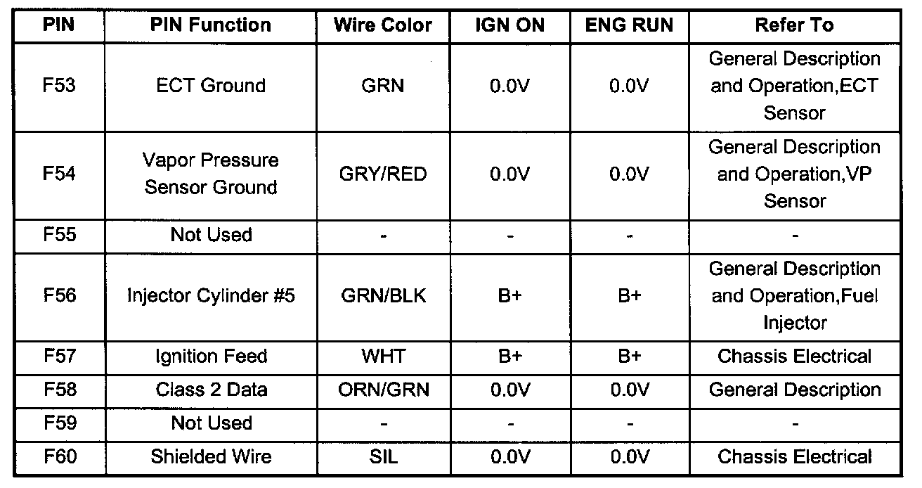 PCM Pinout Table, 80 - Way Blue Connector - Row "F41 - 60" (F53 To F60):