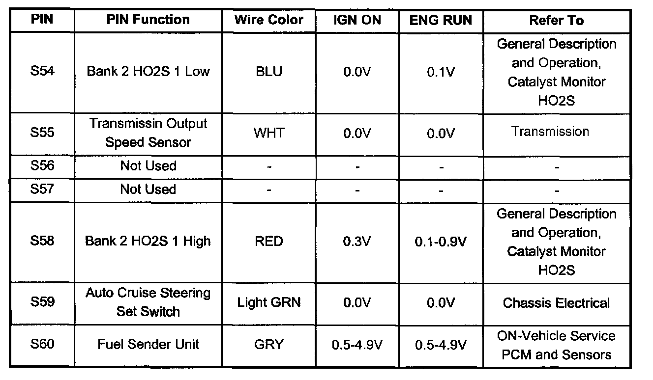 PCM Pinout Table, 80 - Way Red Connector - Row "S41 - 60" (S54 To S60):