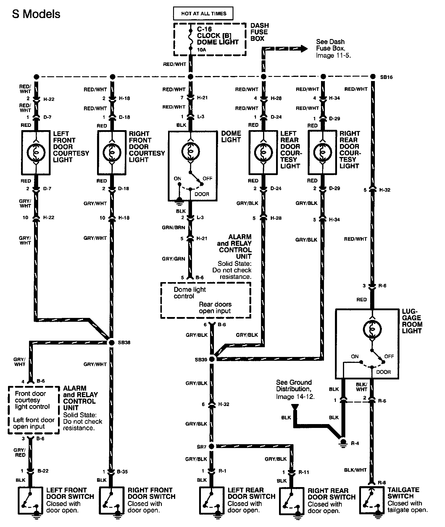 Dome, Luggage Room, Courtesy, & Map Lamps (S Models) Image 114-2: