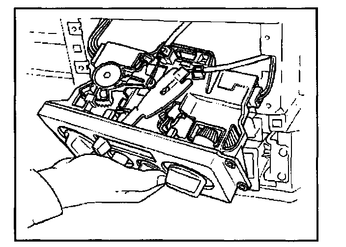 9. Pull the control lever assembly out and disconnect the fan switch and air conditioning switch connectors.