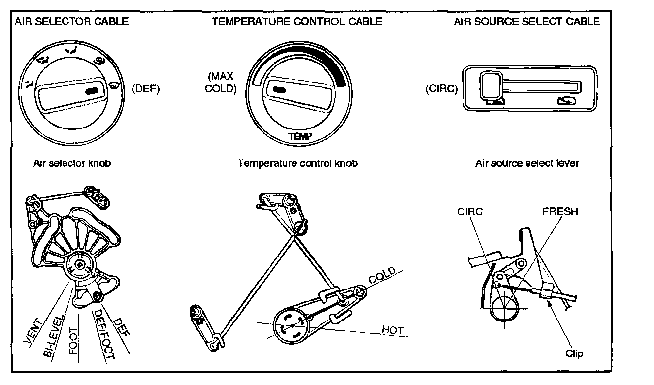 2. Connect the control cable at the "DEFROST" position of the mode control link of the heater unit and secure it with the clip.