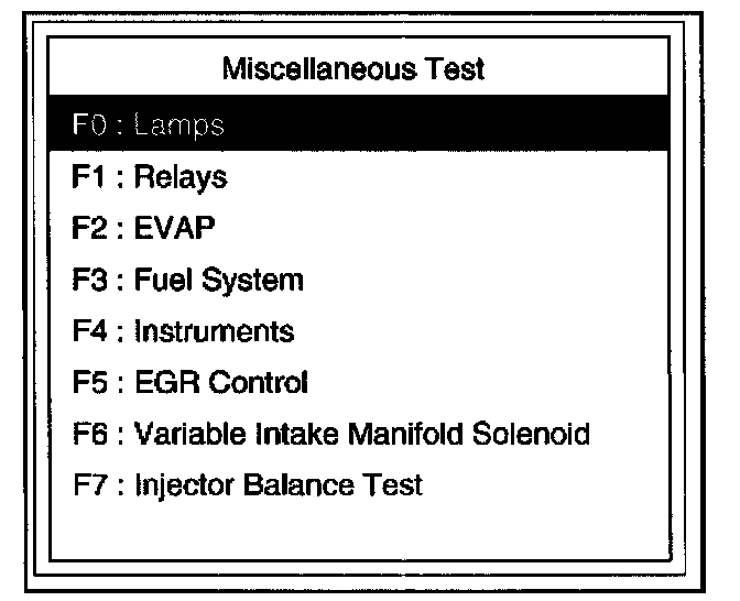 4. Select F0:Lamps Test in the Miscellaneous Test.