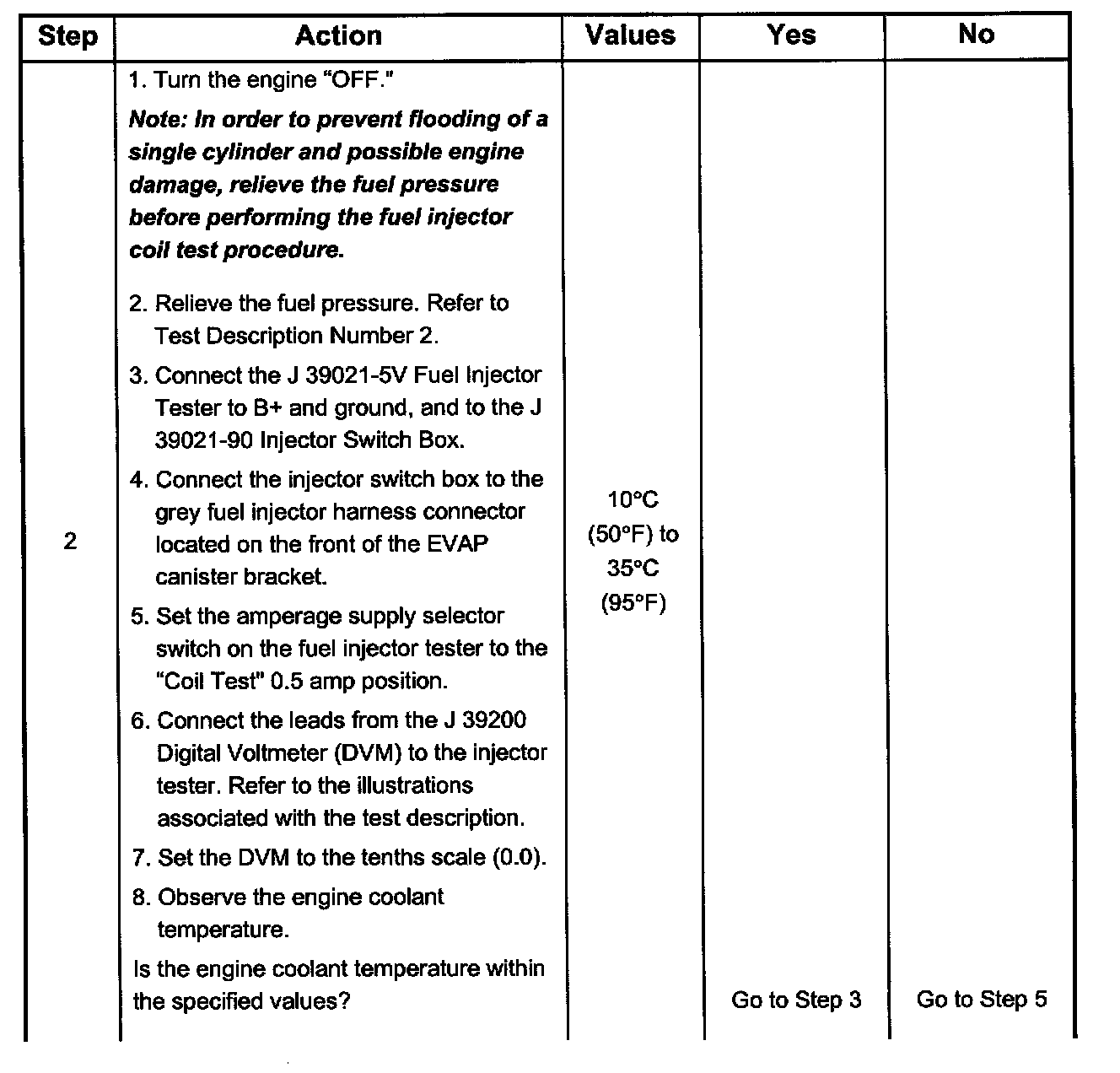 - The voltage displayed by the DVM may increase throughout the test as the fuel injector windings warm and the resistance of the fuel injector windings changes.