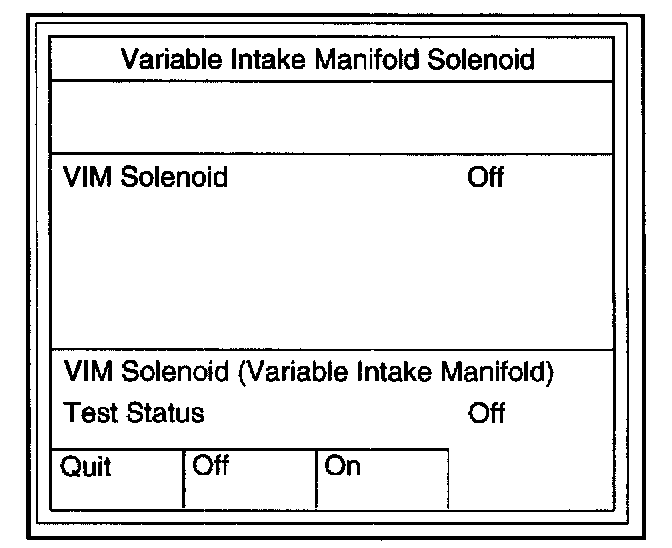 Variable Intake Manifold Solenoid TestThis test is conducted check VIM Solenoid for proper operation.