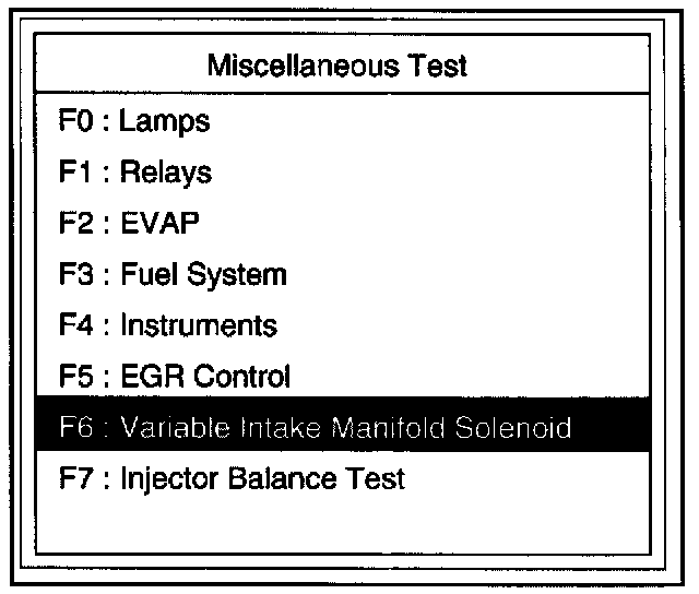 4. Select F6: Variable Intake Manifold Solenoid Test.