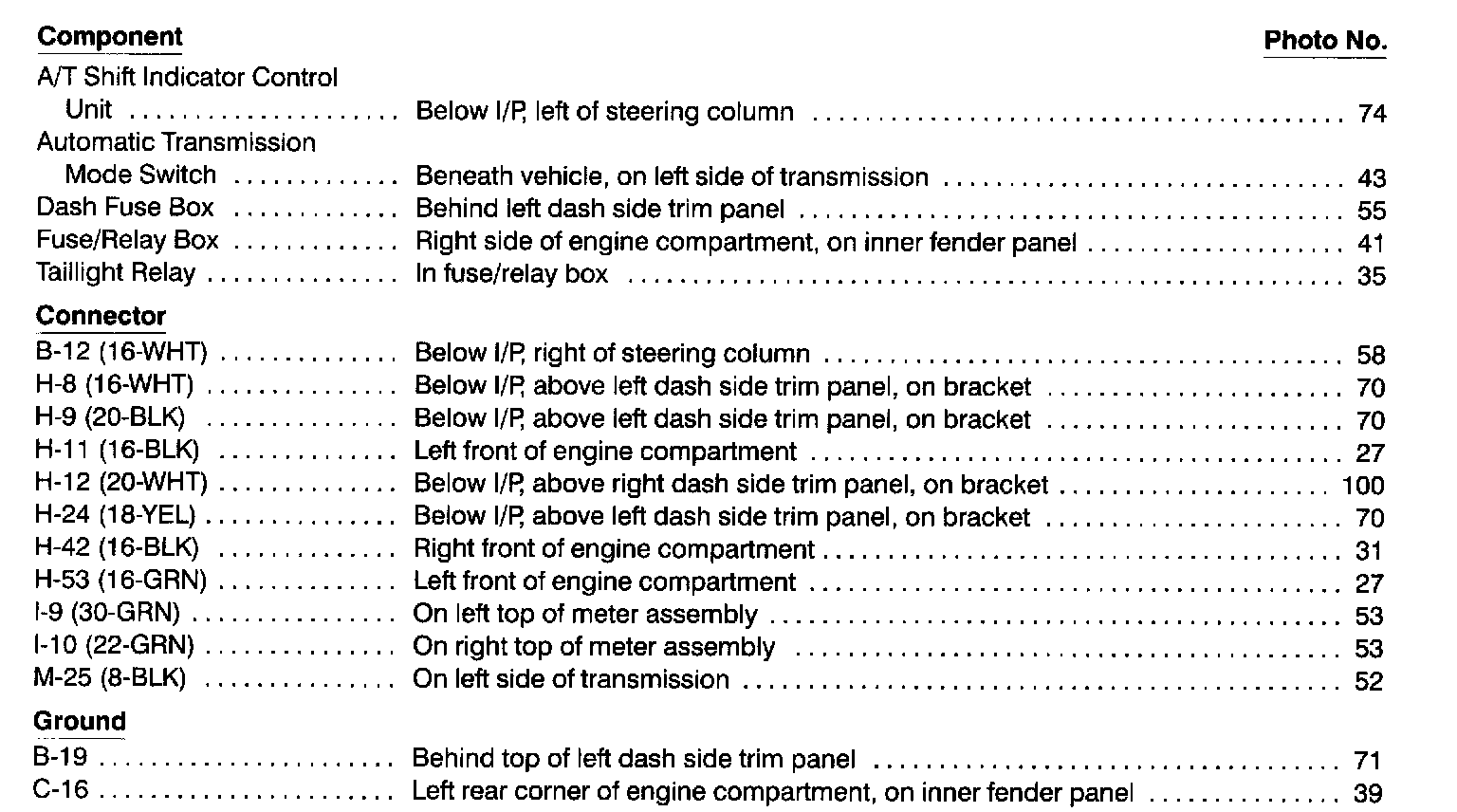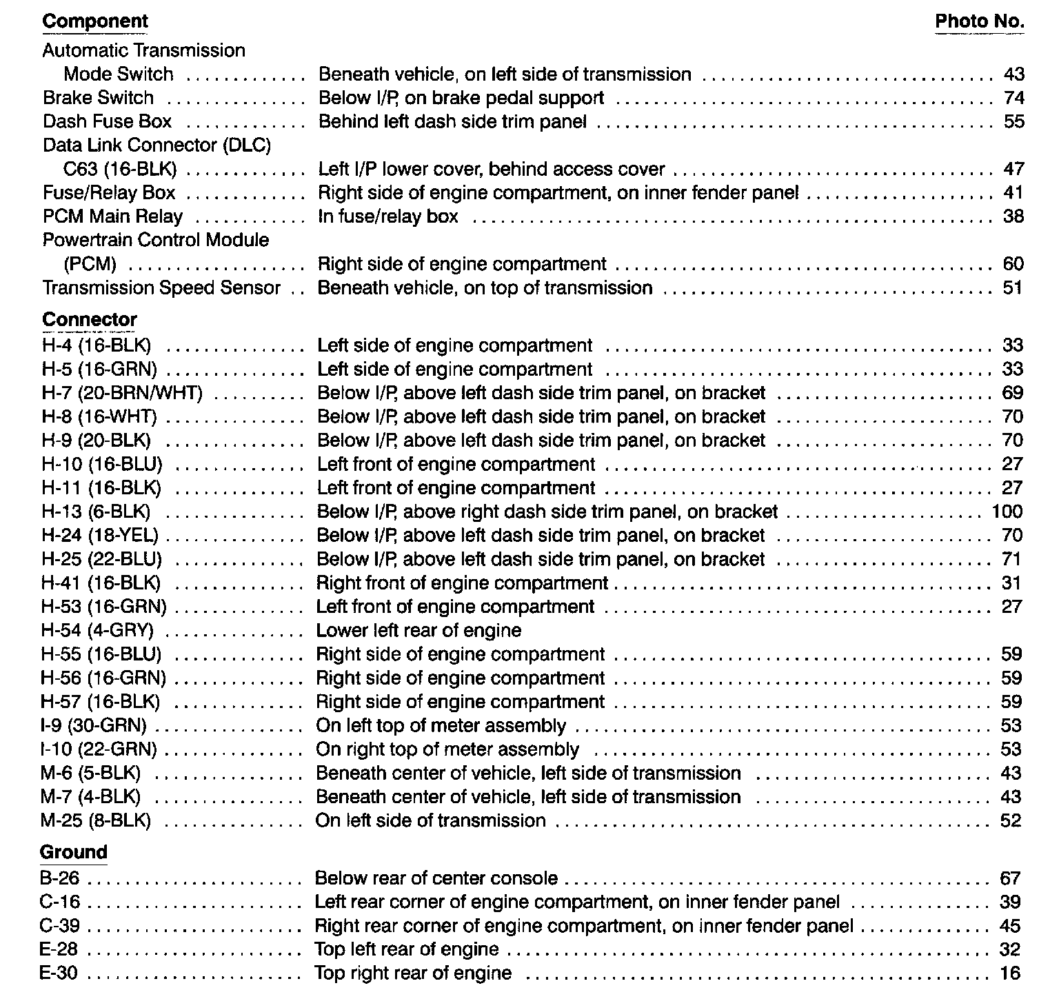 Component Location Index photographs can be found at Component Locations.
