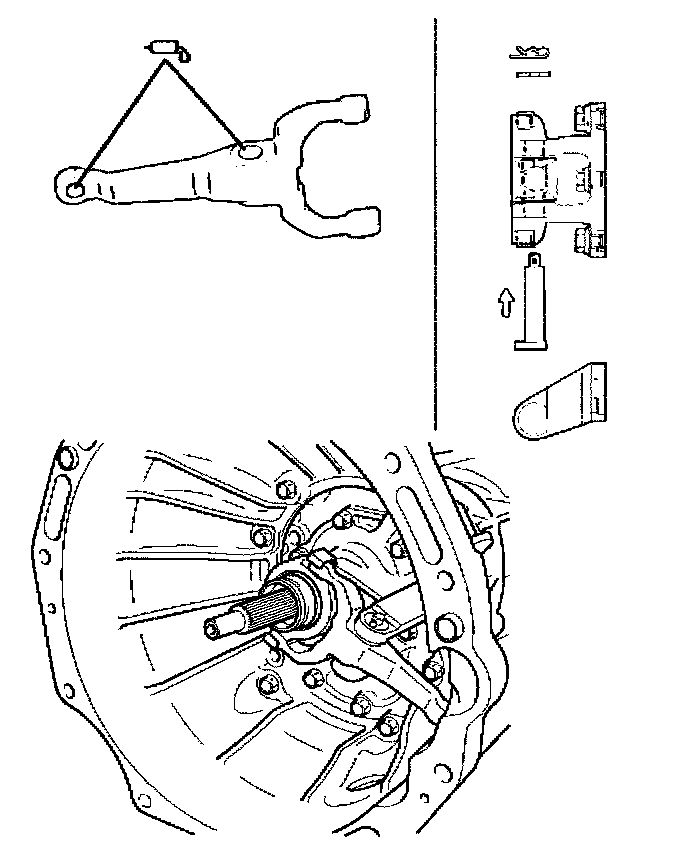 1. Visually check the surfaces of the shift fork making contact with the release bearing for excessive wear and damage.