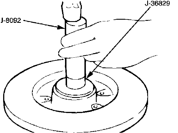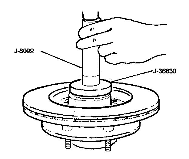 Install the outer race by driving it into the hub by using installer J-36828 and grip J-8092.