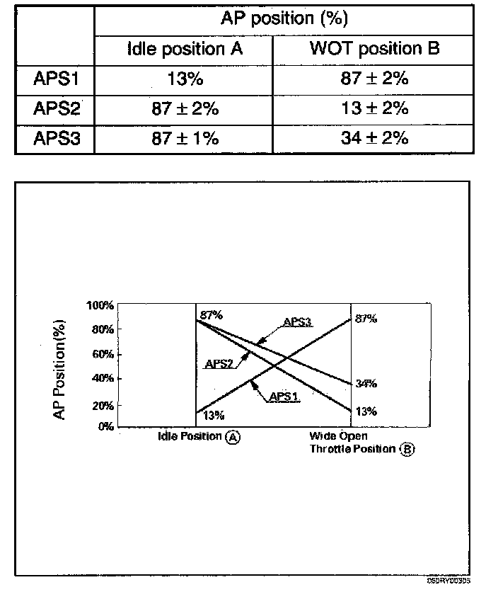 Accelerator Position Sensor AdjustmentAP sensor is controlled three multiple control system, and adjust the idle position and WOT position are between A and B for AP sensor 1, AP sensor 2, and AP sensor 3. Refer to "How to adjust for AP sensor".