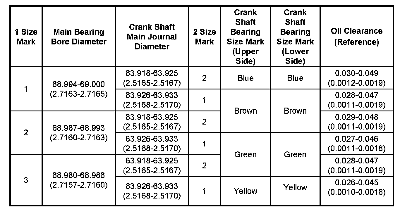 Main Journal Diameter 63.918 - 63.933 mm (2.5165 - 2.5170 in.)
