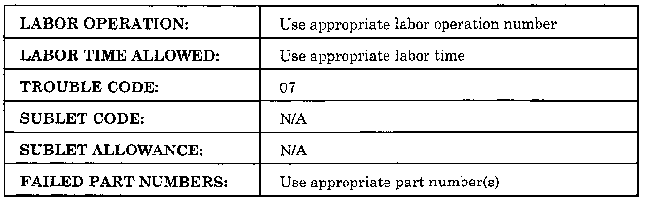 For your convenience please use the information when submitting your warranty claim as shown.