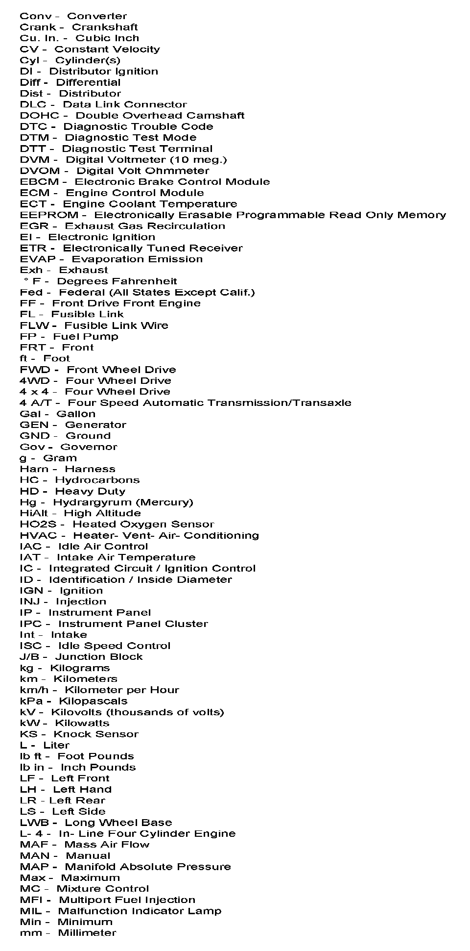 Abbreviations Charts