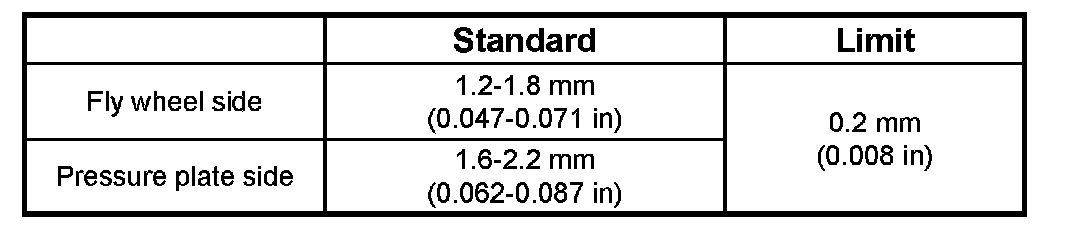 - Be sure to measure the rivet head depression on both sides of the driven plate. If the measured value is less than the specified limit, the driven plate assembly must be replaced.