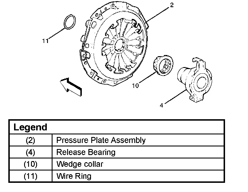 - When replacing the release bearing (4), replace both the wedge collar (10) and wire ring (11) at the same time.