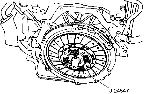 2. Use the pilot aligner J24547 to prevent the driven plate assembly (3) from falling free.