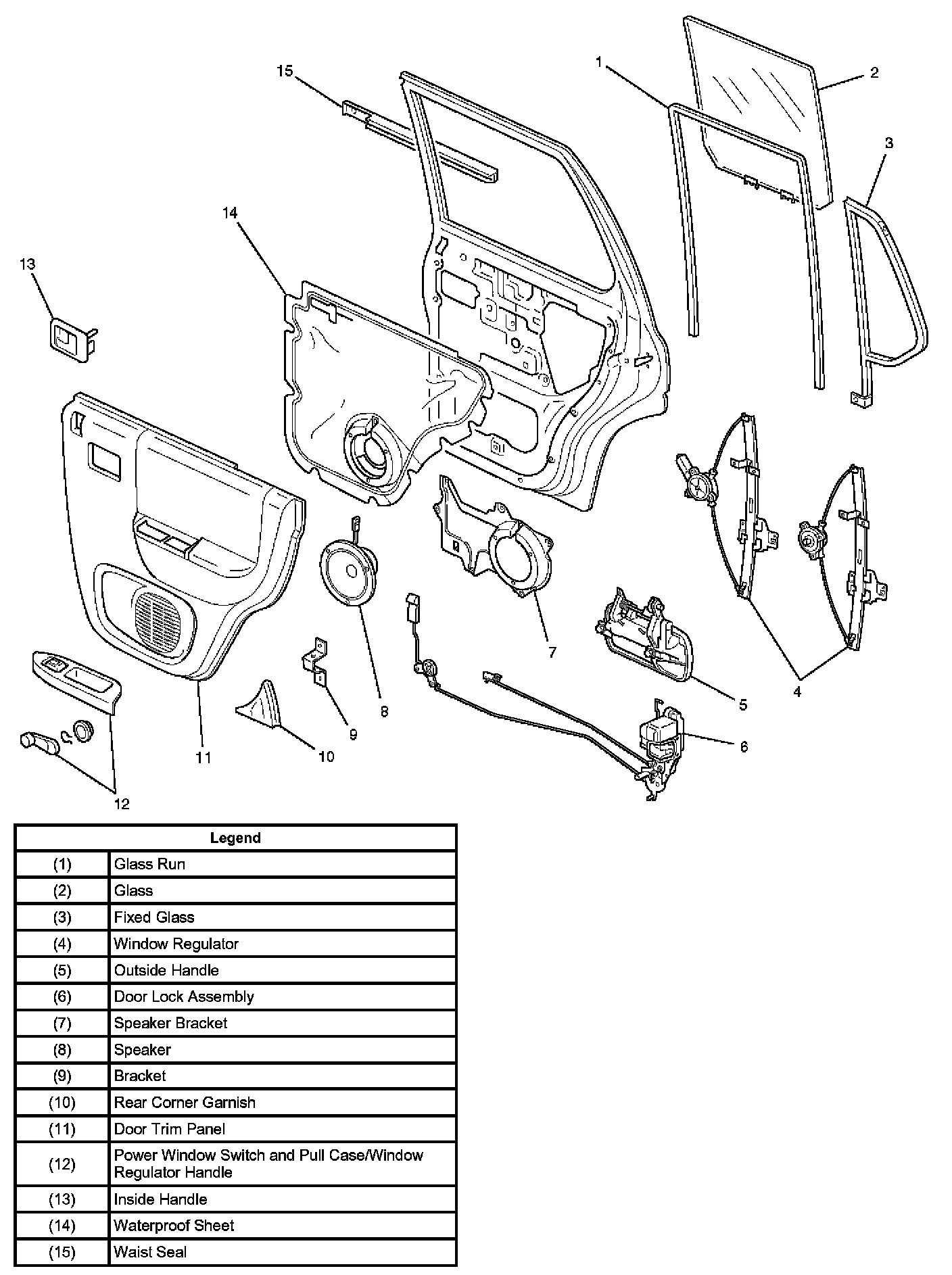 Rear Window Regulator, Glass and Glass RunParts Location: