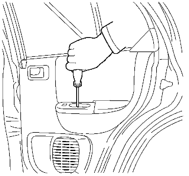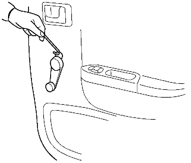 1. Install the regulator handle as shown in the illustration, if equipped without power windows.