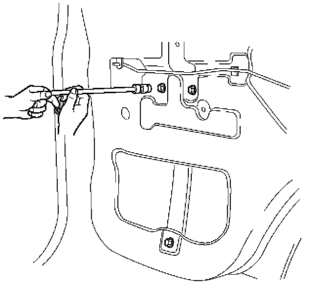 - Remove the window regulator fixing bolts and pull the regulator out from the lower hole of the door panel.