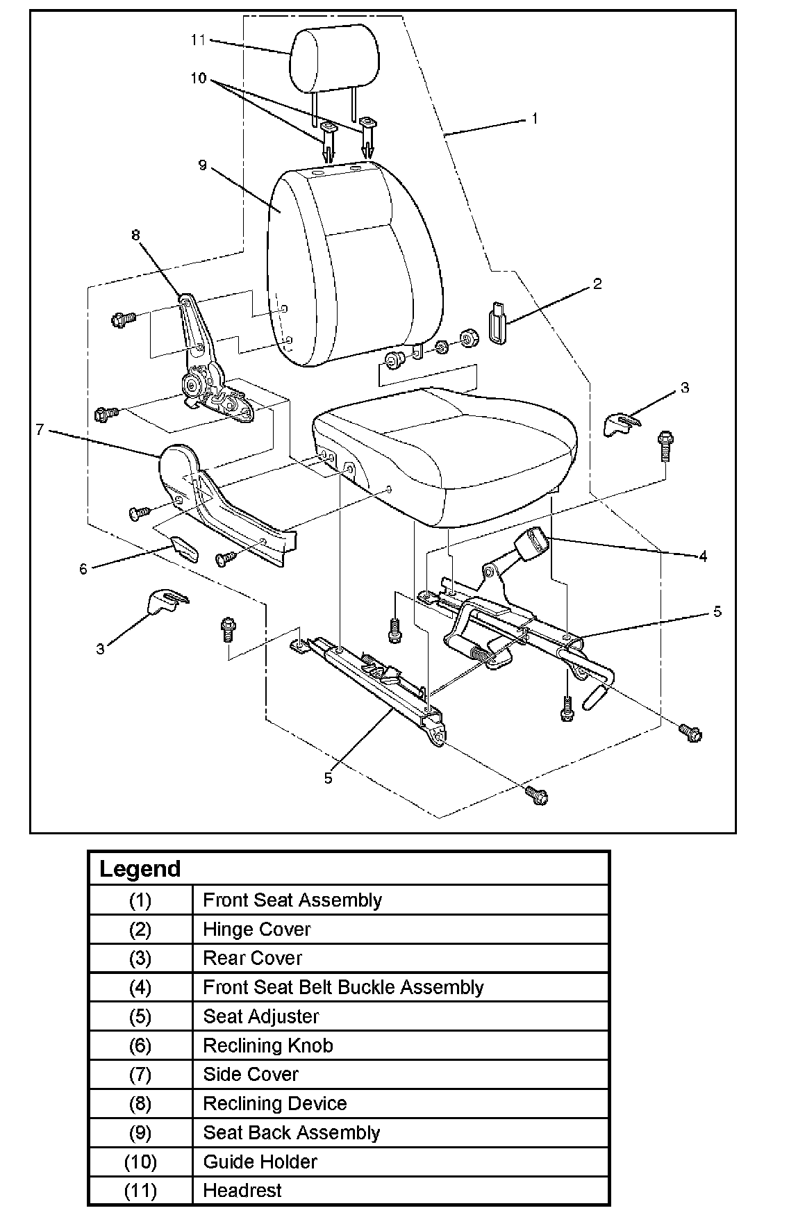 3. Remove the front seat assembly.