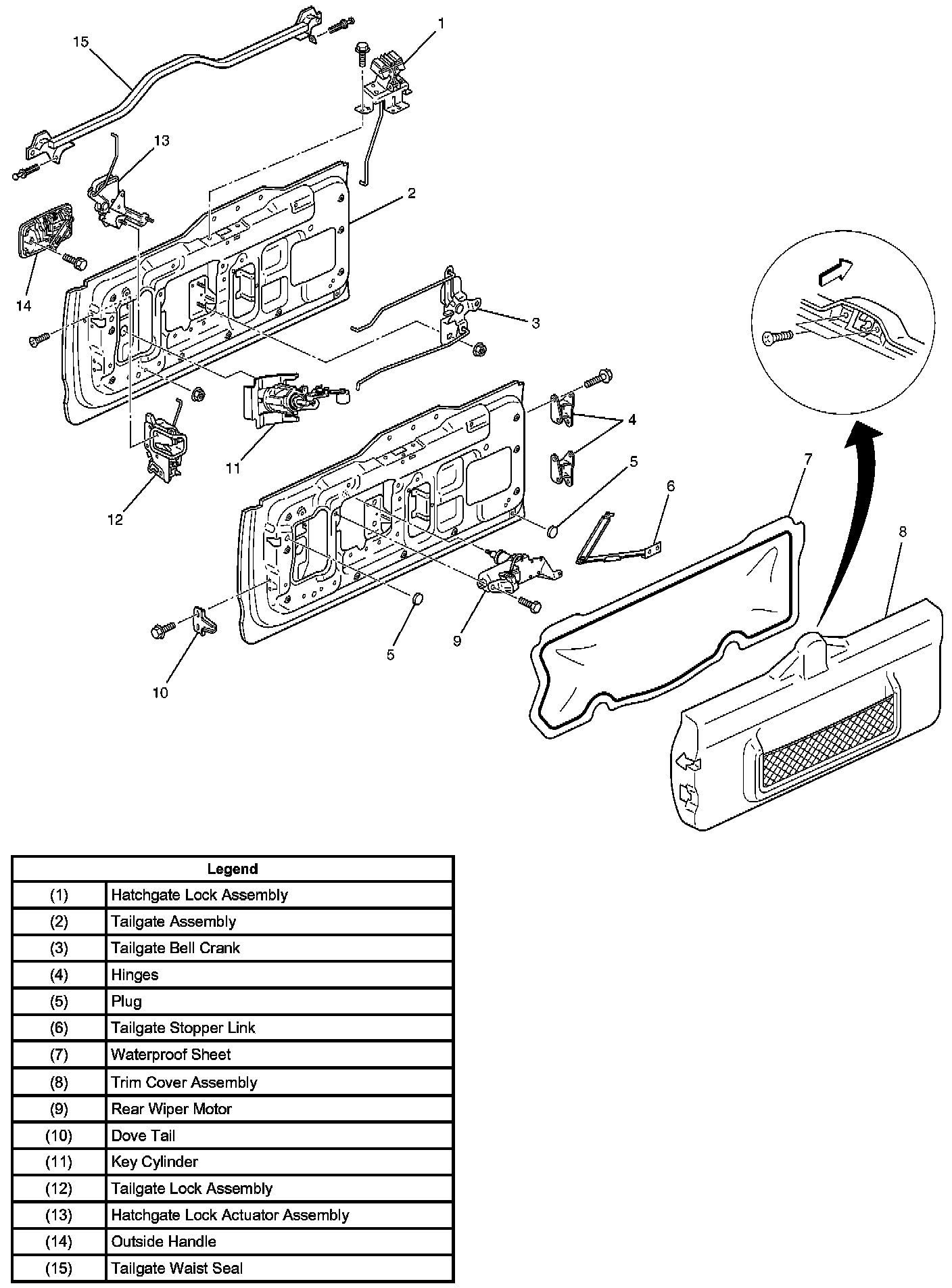 2. Remove the tailgate trim cover assembly (3).