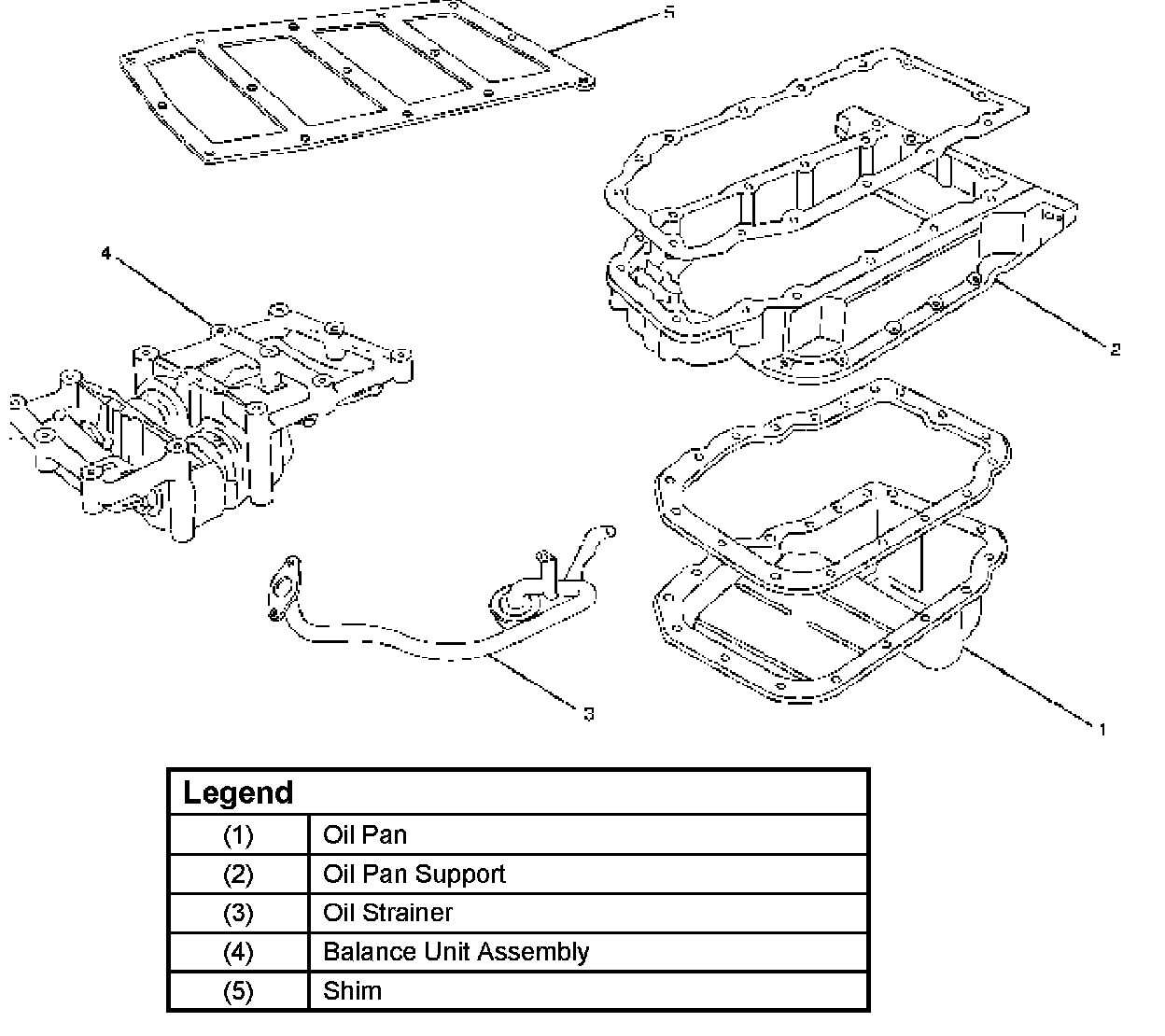 9. Remove balance unit from cylinder block/crankshaft bearing caps and remove with balancer piece. The balancer piece has a number (code), for easy assignment. The tooth backlash can be adjusted by using a balancer piece with a different thickness.