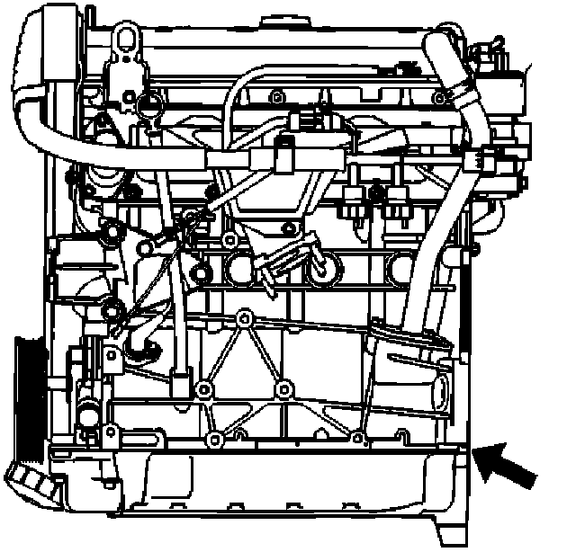 2. Turn balancer shafts until the flattened sides (arrows) of both balancer shafts face downward and are on a horizontal line.