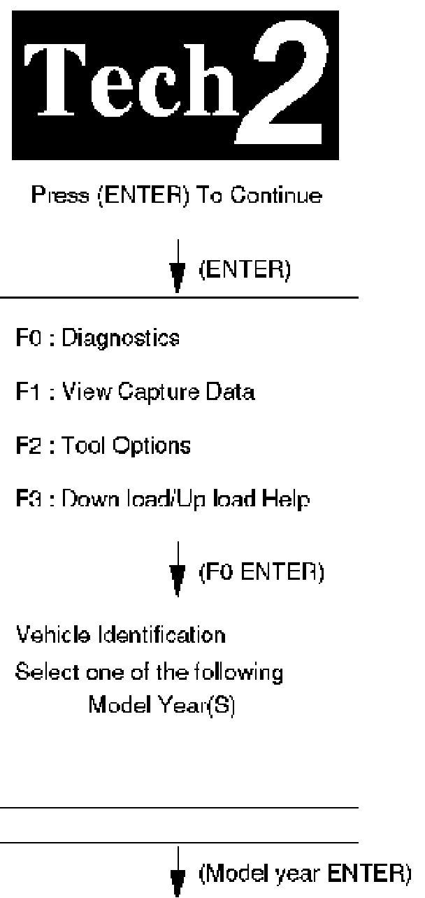 7. Verify the Tech 2 power up display.