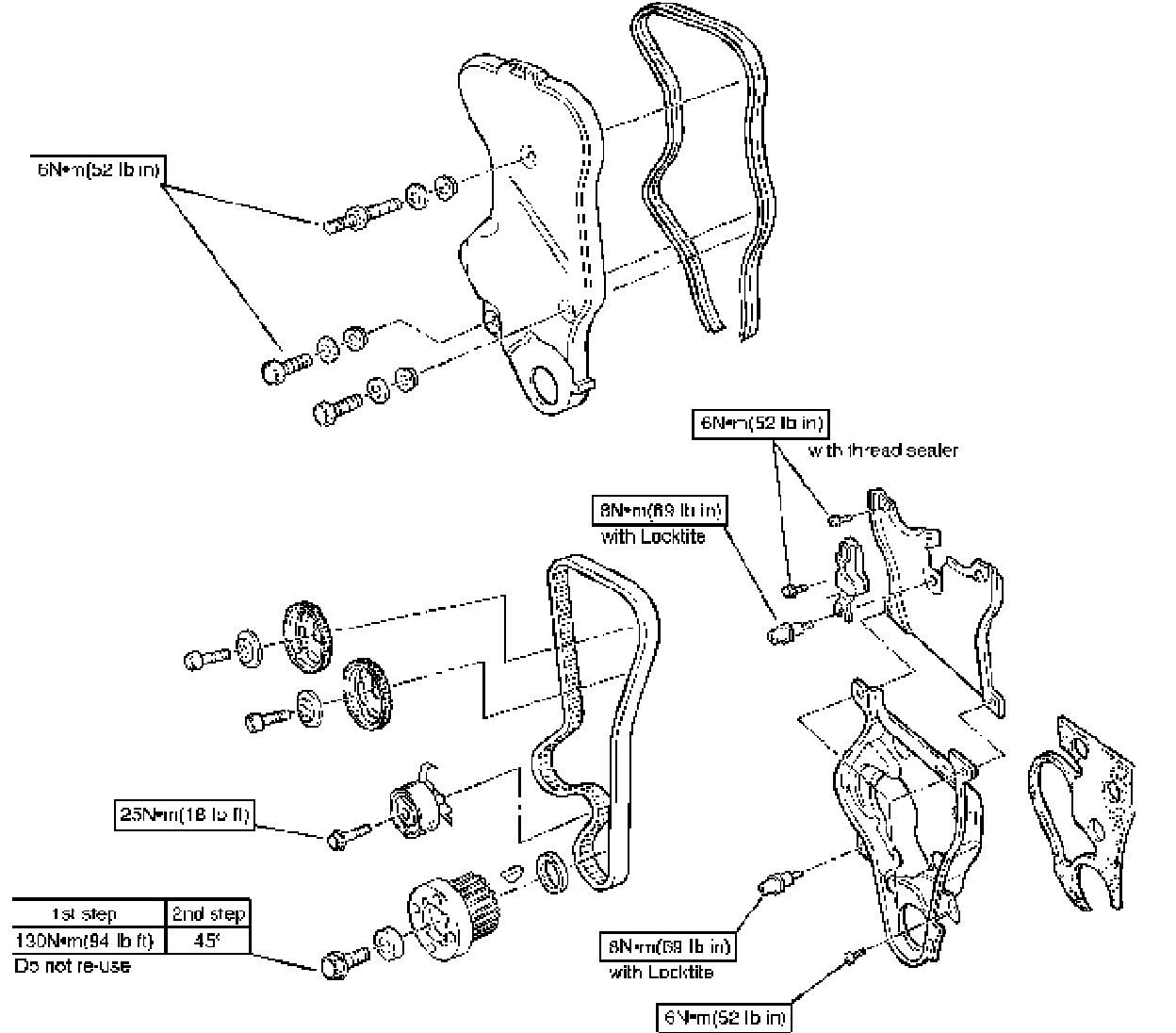 Timing Gear Crankshaft (Center Bolt), Timing Belt Cover Front, Timing Belt Cover Rear, Timing Belt Tensioner, Camshaft Angle Sensor