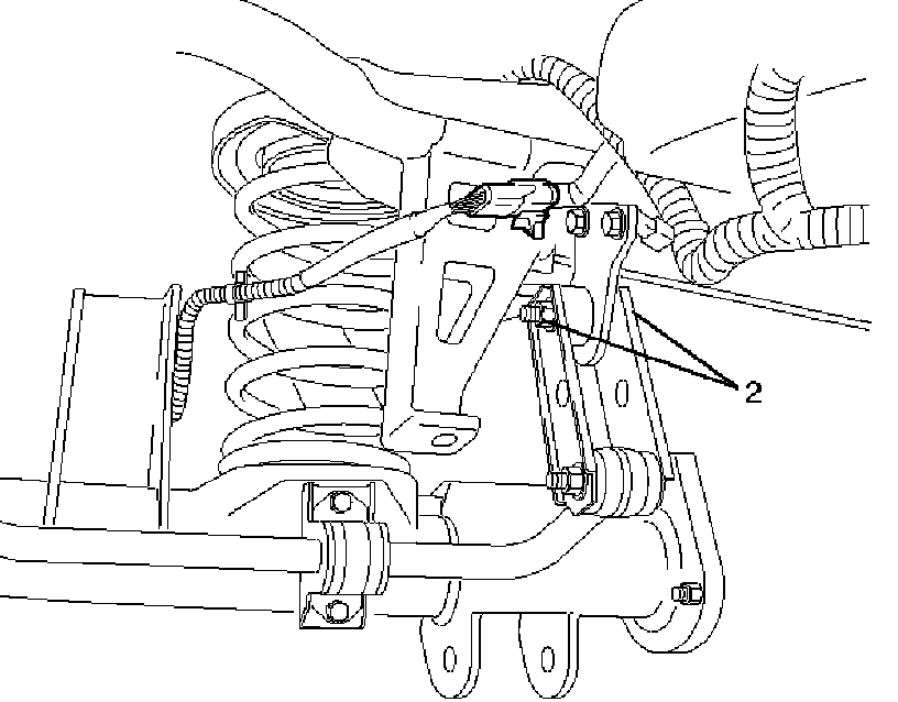 11. Remove the stabilizer linkage mounting bolts and nuts (2) from the frame side.