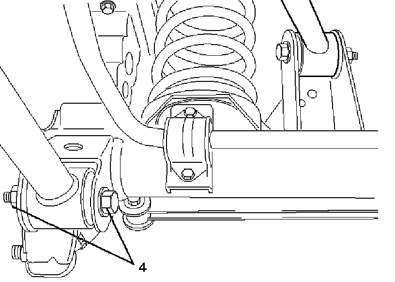 14. Remove the lower link fixing bolt and nut (4) from the axle housing.