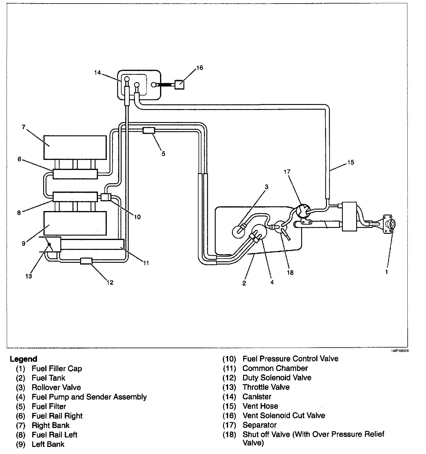 The in-tank fuel pump is an electric pump within an integral reservoir. The in-tank fuel pump supplies fuel through an in-line fuel filter to the fuel rail assembly. The fuel pump is designed to provide fuel at a pressure above the pressure needed by the fuel injectors. A fuel pressure regulator, attached to the fuel rail, keeps the fuel available to the fuel injectors at a regulated pressure. Unused fuel is returned to the fuel tank by a separate fuel return line.