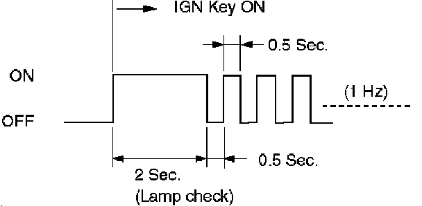 2. Indicator is flashing and the flash is 0.2 seconds ON and 0.2 seconds OFF always when ignition is on (engine cranked or not). This means that there is a malfunction. GO TO DIAGNOSTIC.