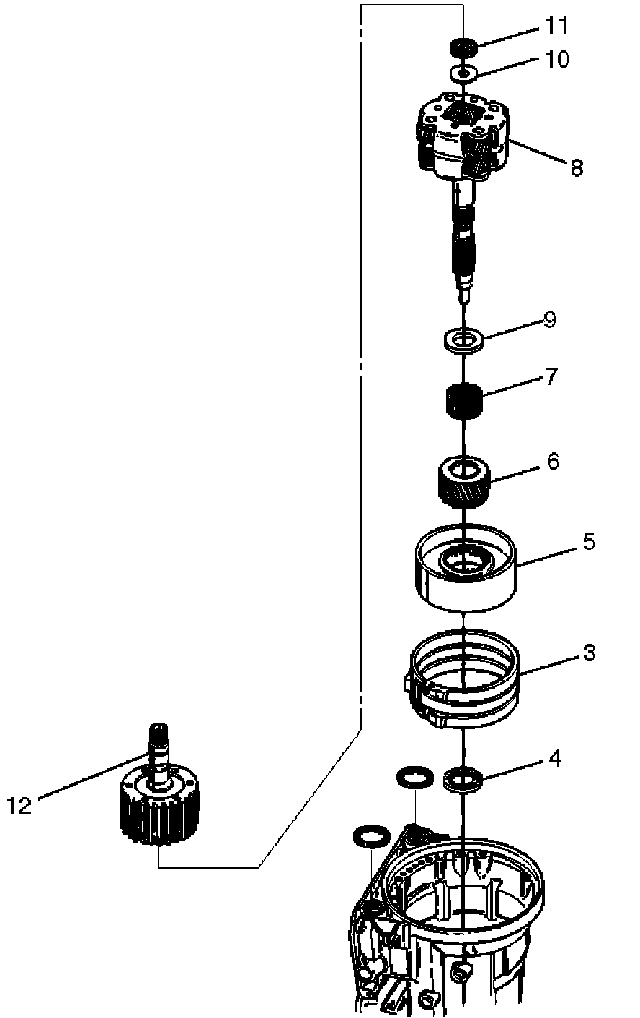 14. Turn transmission to vertical position to drain fluid.