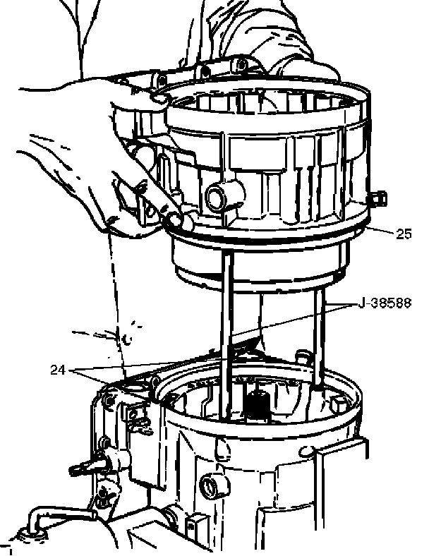 21. Rotate transmission to vertical position, converter housing up.
